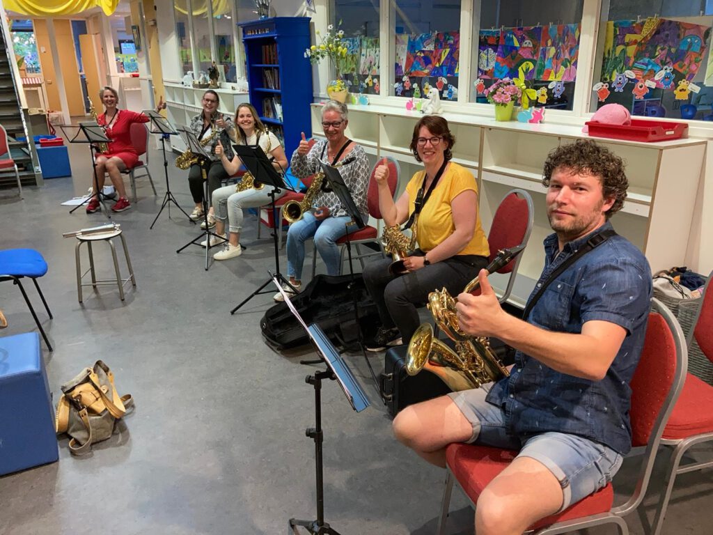 Op de foto ziet u de saxofoonsectie van Excelsior tijdens een repetitie.