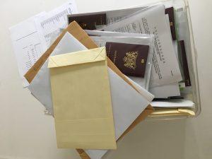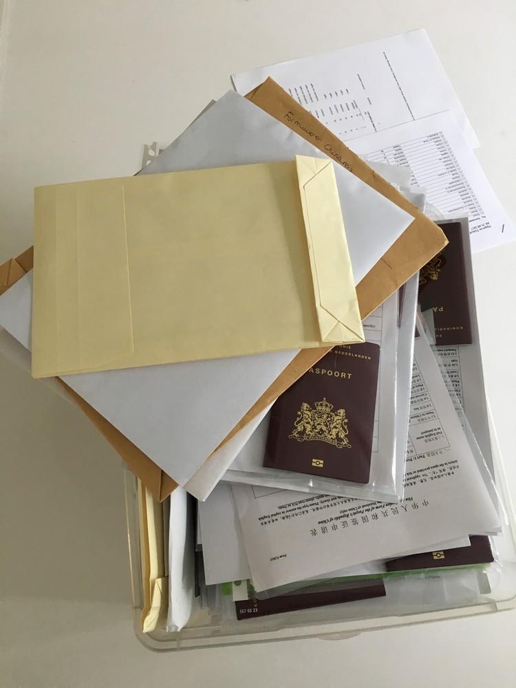 304 pagina’s Chinees/Engelstalige aanvraagformulieren, honderden pagina’s werkgeversverklaring, studieverklaring, KVK uittreksels en BTW-aangiften. Toestemmingsformulieren van ouders voor onze minderjarige muzikanten. Dit aangevuld met 76 paspoorten, 76 pasfoto’s, vliegtickets en hotelreserveringen.